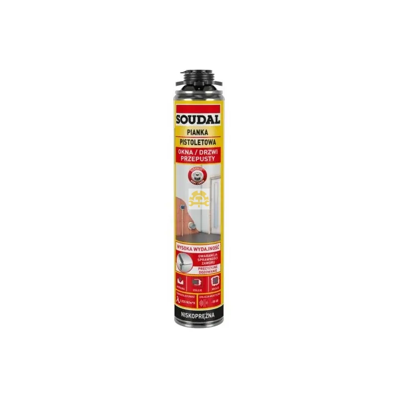 Charakteryzuje się krótkim czasem utwardzania, wysoką wydajnością oraz bardzo dobrą przyczepnością do większości materiałów budowlanych. Powszechnie używana jest m.in. do montażu i uszczelniania ościeżnic okiennych i drzwiowych, uszczelniania i wygłuszania progów, parapetów, rolet itp., termoizolacji dachów oraz wypełniania pustych przestrzeni w konstrukcjach szkieletowych. Pianka pistoletowa firmy Soudal znajduje również zastosowanie przy wypełnianiu przepustów rurowych, izolacji armatury łazienkowej, wanien, brodzików, elementów instalacji centralnego ogrzewania i wodno-kanalizacyjnej, a także przy uszczelnianiu złączy dachowych i ściennych. Innowacyjny zawór Duravalve gwarantuje całkowitą szczelność puszki oraz maksymalną wydajność piany przez cały okres swojej przydatności do użycia.